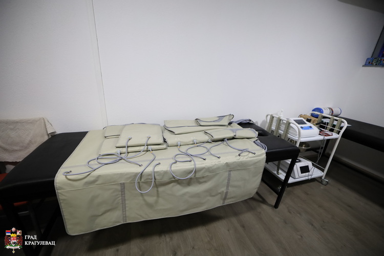 Спортисти ће у амбуланти моћи да добију комплетан програм физикалне терапије и рехабилитације на најсавременијој опреми. Набављени су: апарат за пресо терапију који служи за превенцију и опоравак спортиста (за лимфну дренажу, смањење отока, побољшање венске и лимфне циркулације), затим мултифункционални апарат за електротерапију преко кога се може обављати и хоризонтална терапија а има јако аналгетско и био стимулативно дејство и којим се могу третирати и акутне повреде, потом ласер, магнет, ултразвук и све што је потребно за опоравак, објашњава др Милена Миливојевић. У склопу амбуланте су и многобројни реквизити за рехабилитациони програм, опоравак након физикалне терапије и припрему за враћање спортисте на терен. После лекара и физиотерапеута рад са спортистима у оквиру клубова настављају кондициони тренери.