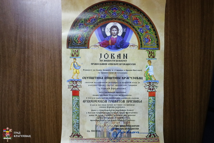 Данас сам овде да заједно са свештенством и верујућим народом у Јарушицама обележим значајан датум за ово шумадијско село, за цркву Светог архангела Гаврила која је откривена пре 200 година. Значајно је да град Крагујевац обележава овакве датуме, да буде овде са својим народом. То је битно за нашу историју, за нашу културу сећања – казао је Петрашиновић који је у име Града Крагујевца примио признање Епархије шумадијске, Архијерејску грамату у знак захвалности за исказану пажњу и помоћ храму Светог архангела Гаврила у Горњим Јарушицама.