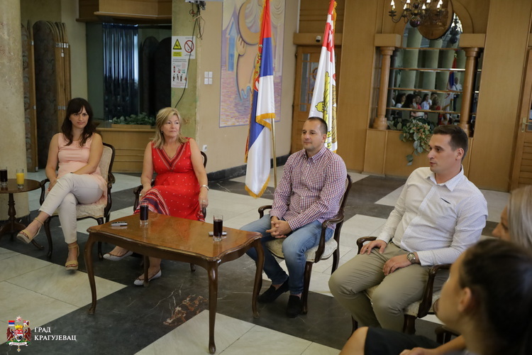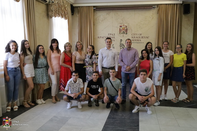 Душан Алексић, члан Градског већа за образовање и Стефан Јовановић, помоћник градоначелника за омладину и сарадњу са Универзитетом, организовали су пријем за ученике и наставнике крагујевачких основних школа који су у оквиру размене ђака боравили у Румунији.