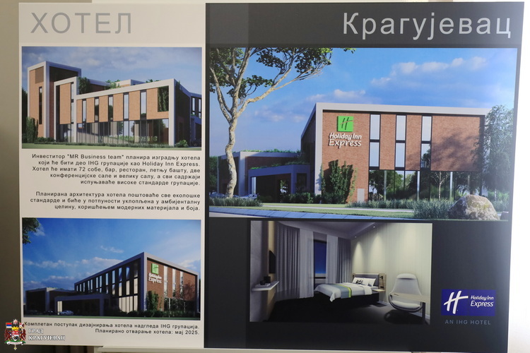 Крагујевац ће добити хотел интернационалног бренда Holiday Inn Express, и то ће бити први хотел овог бренда који ће се градити ван Београда – речено је на данашњем радном састанку који је градоначелник Крагујевца, Никола Дашић одржао са представницима International Hotel Group, Живорадом Васићем, регионалним директором групе и проф. др Николом Макојевићем који су градоначелнику и његовим сарадницима представили ову инвестицију. Састанку се, путем видео линка придружио и Hylko Versteeg, руководилац сектора ѕа развој у Јужној Европи.
