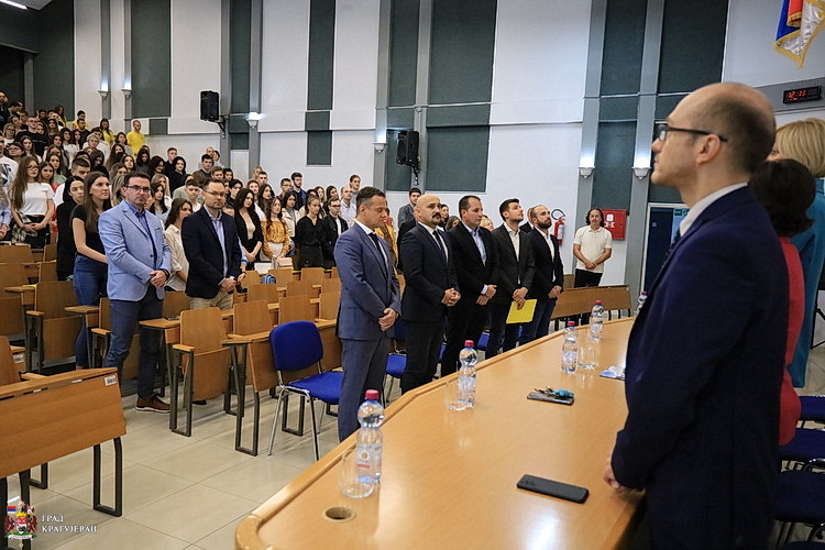 У име града, бруцоше је поздравио, пожелео добродишлицу и срећан почетак универзитетског образовања, председник Скупштине града Крагујевца Мирослав Петрашиновић.