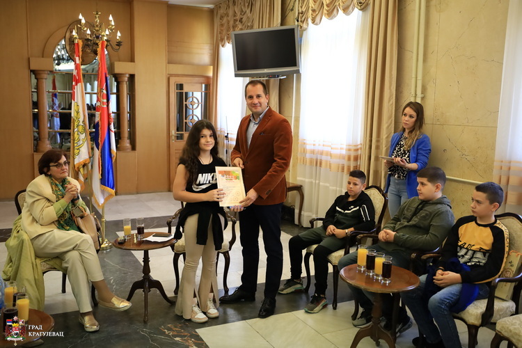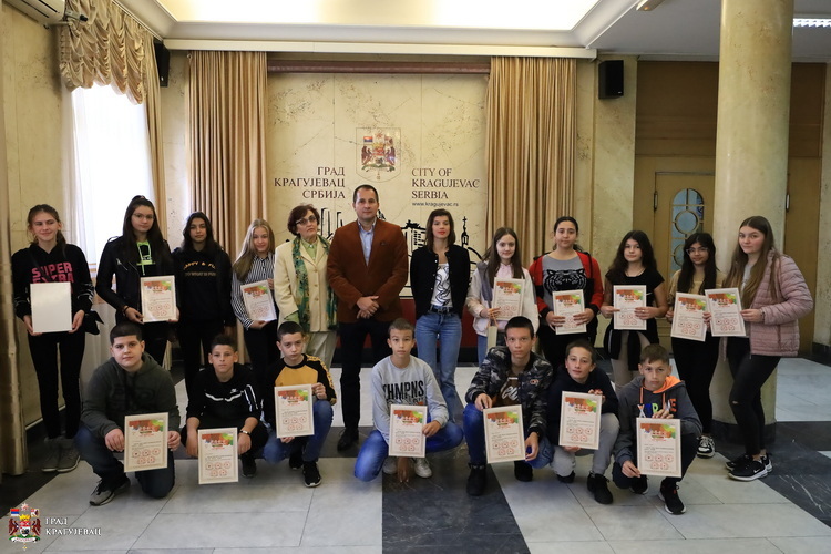 Пријем за ученике из три крагујевачке основне школе који су награђени на Међународном ликовном конкурсу кинеске провинције Ђангсу (2021) и њихове наставнике, организован је у згради Града. Награђен је 21 ученик из школа „19. октобар“, „Јован Поповић“ и „Доситеј Обрадовић“, а награде и дипломе са овог конкурса уручио је Душан Алексић, члан Градског већа за образовање.