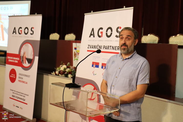 О превенцији болести зависности од игара на срећу говорио је прим. др Ивица Младеновић, специјалиста психијатрије, субспецијалиста болести зависности, начелник Клинике за болести зависности у Београду. У име организатора учеснике трибине поздравио је Драган Шкрбић, истакнути спортиста и репрезентативац, председник Асоцијације гејминг оператера Србије АГОС, а у име домаћина, града Крагујевца, Гордана Дамњановић, члан Градског већа за здравствену и социјалну заштиту.