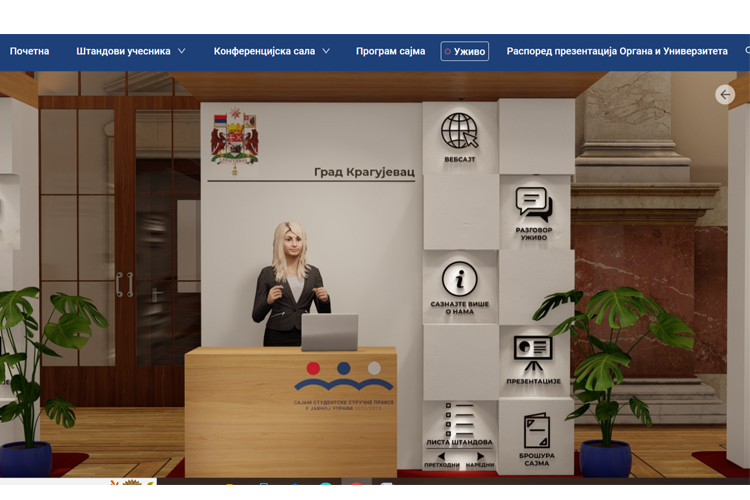 Сајам студентске сручне праксе у јавном управи за школску 2022/2023.годину одржан је путем дигиталне платформе у виртуелном простору Народне скупштине Србије. На другом, по реду, сајму предстaвљено је 56 органа јавне управе који су понудили прaксу за 800 студената са 5 државних универзитета у Србији.