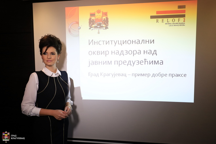 Град Крагујевац је остварио најбоље резултате у овој области од свих локалних самоуправа у Србији које су учесници Пројекта, казала је Марија Живковић, в.д. заменика начелника Управе за инспекцијске послове и комуналну милицију и координатор на пословима контроле и надзора пословања јавних предузећа и привредних друштава у време трајања ове компоненте Пројекта. Град Крагујевац је оснивач 6 јавних предузећа и 11 привредних друштава – укупно 17 ентитета су предмет надзора у смислу контроле пословања. Као најважнији резултати који су током последње две године остварени у овој области могу се истаћи организационе промене које су извршене у Градској управи, услед којих је функција надзора над пословањем градских предузећа централизована, што је дало вишеструке позитивне ефекте. Поред тога, спроведене су статусне промене у јавним предузећима и привредним друштвима које су такође резултирале позитивним ефектима у смислу рационализације трошкова, броја запослених, ефикаснијег управљања ресурсима и боље координације пословних активности.