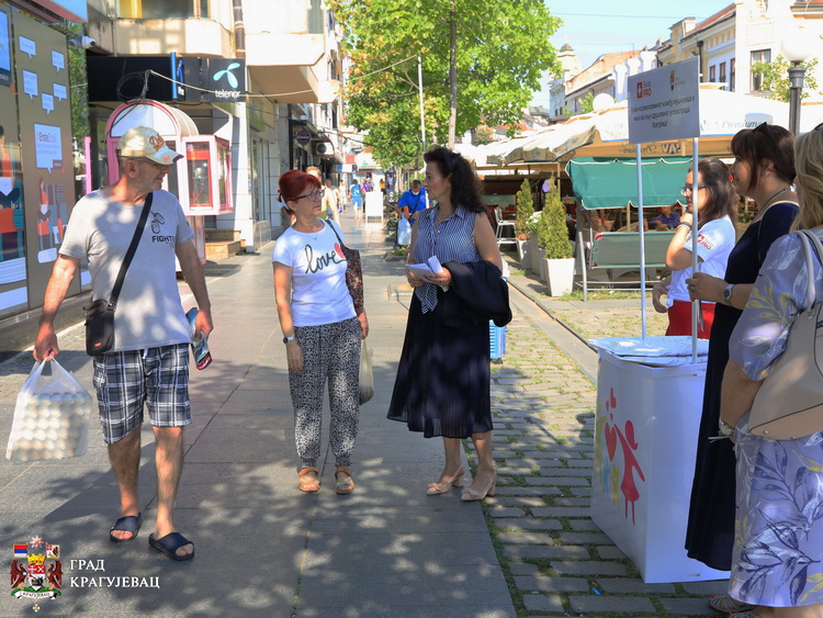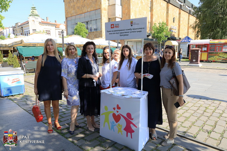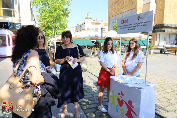 Постављањем штанда у Пешачкој зони, дељењем промотивног материјала и разговором са грађанима, симболично је обележен завршетак пројекта ''Право на равноправност између мушкараца и жена као кључ друштвеног успеха града Крагујевца“.