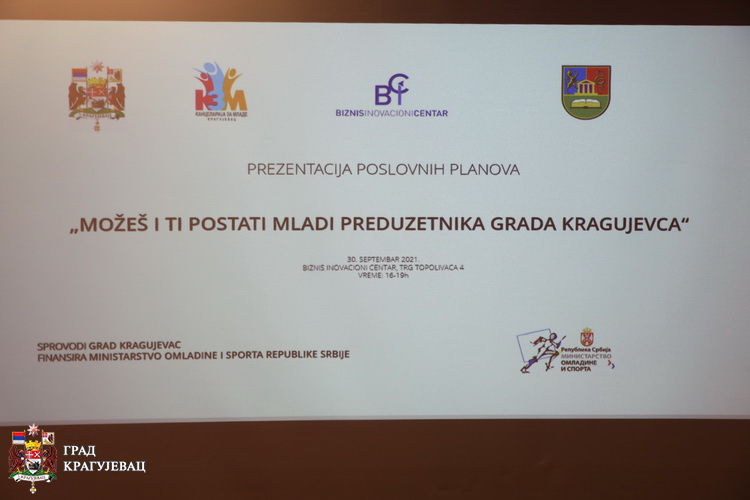 Учесници пројекта „Можеш и ти постати млади предузетник града Крагујевца“ након завршетка тронедељне обуке, представили су своје бизнис идеје. Реч је о пројекту који за циљ има унапређење система подршке за повећање запошљивости младих кроз развој личних вештина и компетенција на локалном нивоу, а партнерски га реализују Град Крагујевац и Канцеларија за младе са Бизнис иновационим центром и Универзитетом у Крагујевцу. Презентацији у Бизнис иновационом центру, присуствовали су Момчило Сретеновић, директор центра а у име града помоћник градоначелника за омладину и сарадњу са Универзитетом Стефан Јовановић.