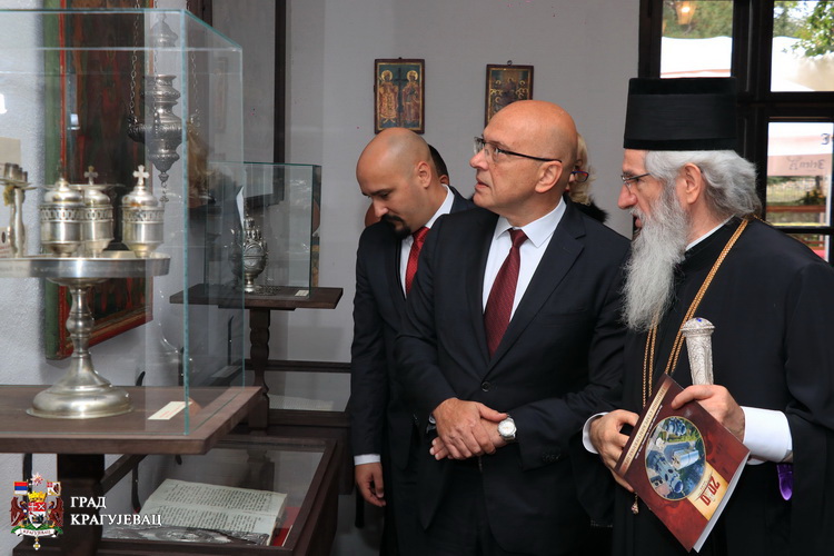 У оквиру централне манифестације обележавања два века Старе цркве данас је у Старој скупштини отворена изложба уметничких предмета “Из ризнице Старе крагујевачке цркве“. У присуству Његовог преосвештенства епископа шумадијског Јована, Биљане Илић-Стошић, начелника Шумадијског управног округа, Мирослава Петрашиновића, председника Скупштине града, Ивице Момчиловића, заменика градоначелника и Миљана Бјелетића, члана Градског већа, изложбу је отворио Владан Вукосављевић, министар културе и информисања у Влади Републике Србије.