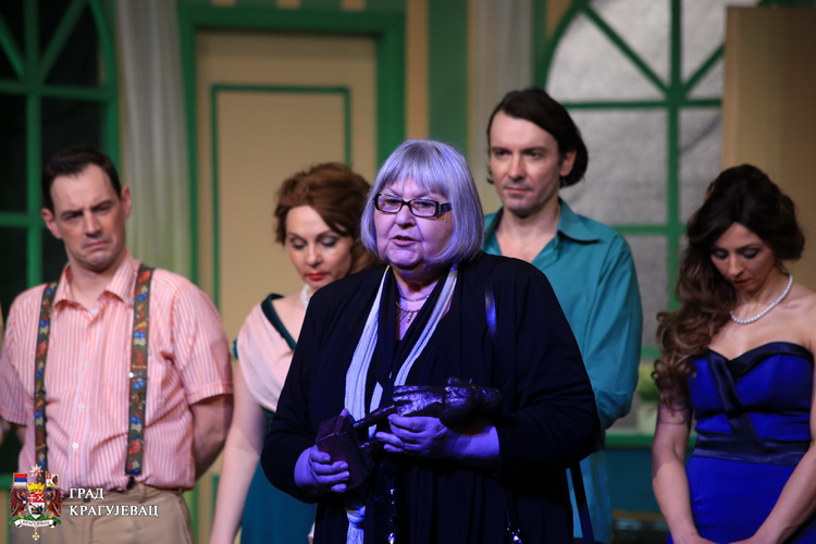 У јубиларној години премијерни репертоар ће бити посвећен уметницима који су стварали историју крагујевачког позоришта и припремљен је као својеврстан омаж неким од најуспешнијих представа које су извођене у послератном периоду. Једна од њих је Бриши од своје жене коју су глумци од 1992. до 1995. године играли у позоришту. Комедију о љубавном животу романтичног таксисте коме комшије помажу да се избави од својих жена и инспектора играли су Никола Милојевић, Сања Матејић, Јасмина Димитријевић, Чедомир Штајн, Иван Видосављевић, Миодраг Пејковић, Александар Милојевић Лија, Марија Ракочевић и Богдан Милојевић.