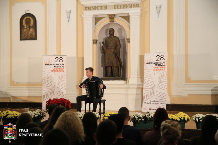 Концертом победника такмичења у Кастелфидарду, Владмира Ступњикова из Русије у сали Прве крагујевачке гимназије, синоћ је званично отворен 28. Интернационални фестивал уметника хармонике, један од највећих и најпрестижнијих фестивала класичне хармонике. Фестивал је у име града отворио Александар Штајн, помоћник градоначелника за унутрашњу и међународну сарадњу.