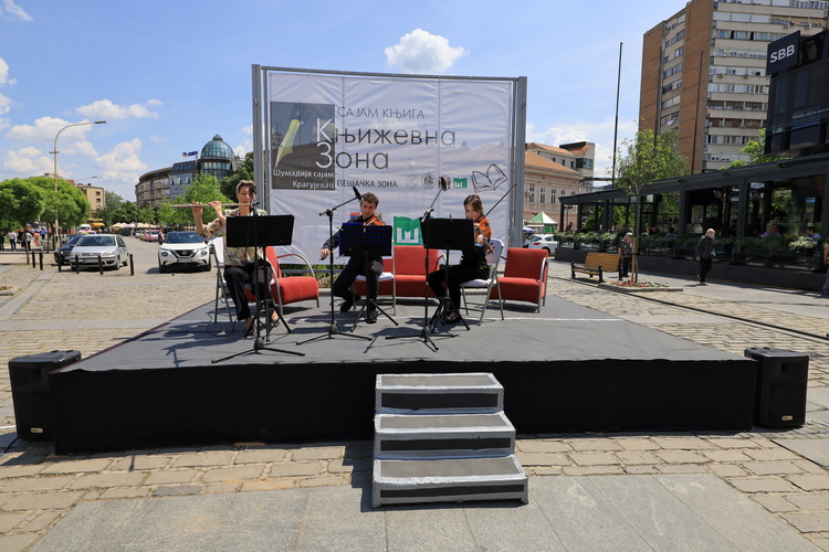 У Пешачкој зони, у организацији Шумадија сајма, Народне библиотеке „Вук Караџић“ и Установе културе „Кораци“ под покровитељством града Крагујевца, отворен је сајам књига. „Књижевну зону“ отворила је сликарка Ана Петровић.