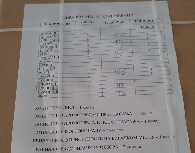 У Крагујевцу се спроводе непосредни избори за чланове савета 13 националних мањина за град Крагујевац и општине Топола, Лапово, Рача, Баточина и Кнић. На два бирачка места у МЗ “Палилуле“ и МЗ “Бубањ“ своје бирачко право моћи ће да оствари 1349 уписаних бирача (Ашкалије, Бошњаци, Бугари, Буњевци, Власи, Грци, Египћани, Мађари, Роми, Румуни, Русини, Словенци и Чеси).