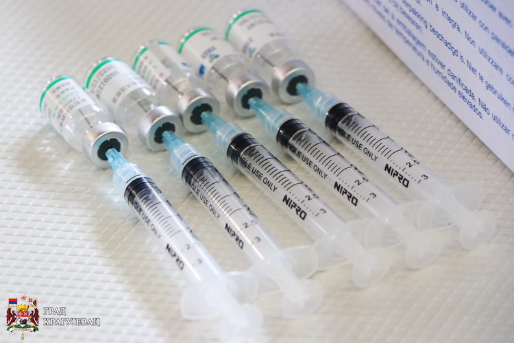 Истовремено, упућен је апел суграђанима који желе да се пријаве за вакцинацију, да то учине преко портала Е управе или оператера кол центра. У првој тури Крагујевац је добио 24715 вакцина Синофарм, а вакцинисано је 16828 суграђана, што чини тек 13% становништва. Ревакцинација је отпочела данас у хали Парк. Паралелно са имунизацијом, тече и појачан комунално инспекцијски надзор.