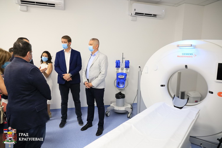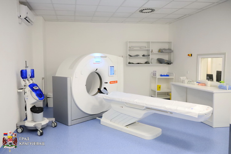 Посетом државних секретара Министарства здравља проф. др Зорана Радовановића и доц. др Александра Стефовског у присуству градоначелника Крагујевца Николе Дашића, директора УКЦ проф. др Предрага Саздановића, ректора Универзитета проф. др Ненада Филиповића, декана Факултета медицинских наука проф. др Владимира Јаковљевића, начелнице Шумадијског управног округа Биљане Илић Стошић и лекара УКЦ, данас су званично пуштени у рад мултислајсни скенер на Клиници за радиологију и најсавременије опремљена ангио сала интервентне медицине Клинике за радиологију. За опремање две важне позиције у здравственом систему регионалног центра, Министарство здравља РС је обезбедило око 150 милиона динара и то 82 милиона за опремање кабинета за скенер и 67 милиона динара за ангио салу.