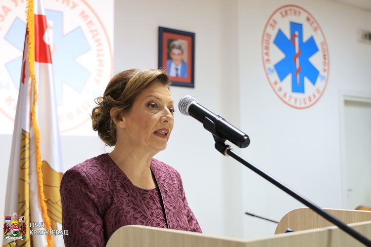 Почело се скромно, 1983. године у подруму Института за јавно здравље, са двадесетак здравствених радника, минималном опремом и једним теренским возилом. Данас, 39 година касније, Завод има преко 170 запослених и много се тога променило. Кренули су од Службе а данас су Завод за ургентну медицину, а град Крагујевац се трудио да обезбеди све неопходне услове, возила, опрему, зграду у којој су данас и све остало што је нужно за његов беспрекоран рад, подсетила је Сања Туцаковић. Недавно су од Министарства здравља добили и девет нових возила, од којих су четири праве мале клинике. Задовољство је што је та помоћ стигла у Завод где се ради 24 сата дневно, седам дана у недељи и 365 дана у години и где грешке нису дозвољене. Током пандемије у Заводу није било могуће редуковати одређене поступке, скратити процедуре, смањити број интервенција или пацијената, већ су поред свих текућих послова морали да обављају и остале послове које је проузроковала пандемија КОВИД-19, због тога у име града Крагујевца и градоначелника изражавам неизмерно поштовање према свим запосленима и желим им, поручила је Туцаковић да наставе са успешним и професионалним радом као што је то било и до сада.