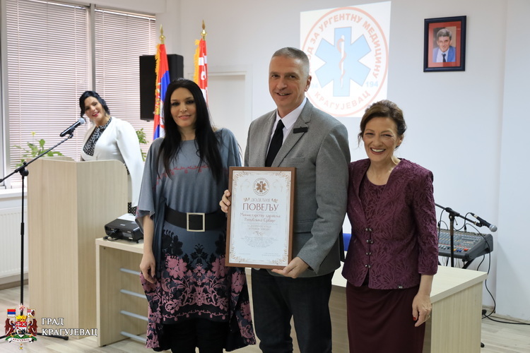 Завод за ургентну медицину Крагујевац је 39 година рада обележио свечаном академијом на којој су запосленима у овој установи, донаторима, привредним предузећима, предузетницима, здравственим, образовним и социјалним установама, јавним предузећима, удружењима и појединцима уручене захвалнице, медаље и плакете и највише признање „Повеља за допринос у раду и развоју Завода“ коју је добило Министарство здравља.