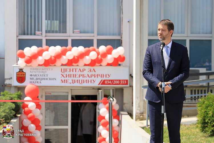 Центар за хипербаричну медицину Факултета медицинских наука данас је званично отворен у просторијама Завода за здравствену заштиту радника. Свечаном отварању присуствовали су градоначелник Никола Дашић, проф.др Владимир Јаковљевић, декан Факултета медицинских наука, Биљана Илић Стошић, начелница Шумадијског управног округа, Гордана Дамњановић, чланица Градског већа за здравствену и социјалну заштиту и др.