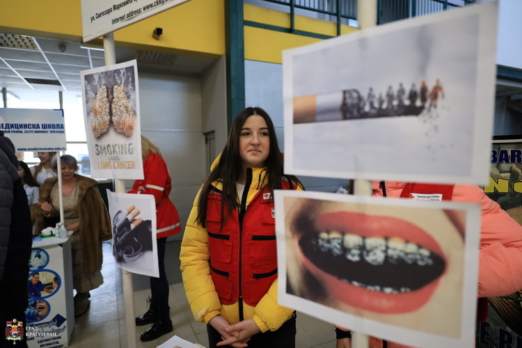 Пушење је један од водећих јавно-здравствених проблема за који је СЗО још 2005. године потписала Конвенцију а Србија ратификовала 2006. На националном нивоу 2010. године донет је закон о забрани пушења на јавним местима без нулте толеранције, односно апсолутне забране пушења у затвореном простору, подсетила је др Гордана Дамњановић, чланица Градског већа за здравствену и социјалну заштиту. Пакет ефикасних мера, СЗО је још 2008. године донела међу којима забрана рекламирања, спонзорства и промоције дуванских производа, цене цигарета и дуванских производа. Пушење се сврстава у једну од болести зависности, а Србија је у самом врху европских и светских земаља по броју пушача. Забрињавајућ је број жена који се из године у годину увећава. Према истраживањима Института Батут постоји помак у смањењу конзумирања дувана када су млади у питању и то је оно што је добро, истакла је др Дамњановић. У свету је око 1,2 милијарде пушача и око 6 милиона људи на годишњем нивоу премине од болести које су узроковане или су последица употребе дувана. Пушење је и велики социо-економски проблем јер управо најсиромашнији су, према истраживању, конзументи цигарета. Кампање на светском и националном нивоу представљају борбе против пушења али свакога дана их треба спроводити нарочито међу младима, женама и вулнерабилним категоријама становништва. Град Крагујевац има изузетне сараднике и ми заједнички спроводимо те кампање, истакла је др Дамњановић.