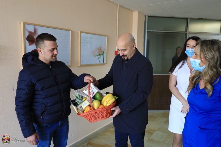Жељно смо сви исчекивали рођење прве бебе у Новој 2023. години и после 48 сати, 3. јануара родио се Давид коме су се јако обрадовали прво његови родитељи а потом и локална самоуправа јер смо богатији за још једног једног Крагујевчанина, рекао је Петрашиновић. Његови родитељи добили су своје прво дете, јунака Давида, коме желим срећно и безбрижно детињство испуњено љубављу и игром, а држава и Град наставиће да стварају што боље услове за рађање беба а њиховим породицама да могу да их издржавају. На предлог градоначелника који усваја Градско веће, град Крагујевац традиционално, прворођеној беби у Новој години дарује 100.000 динара, чиме додатно уз средства које опредељује Влада Републике Србије, подстичемо пронаталитетну политику, како би проценат прворођених беба из године у годину не био све већи, казао је Петрашиновић.