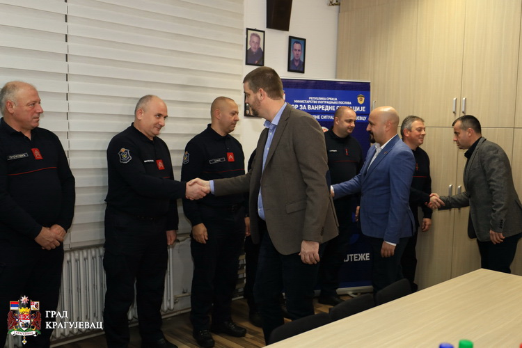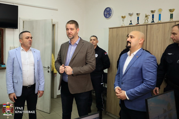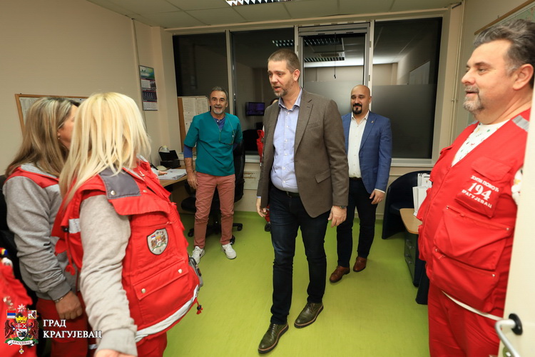 Градоначелник, Никола Дашић и председник Скупштине града Мирослав Петрашиновић обишли су вечерас службе које дежурају у новогодишњој ноћи – Полицијску управу Крагујевац, Ватрогасно – спасилачку бригаду и Завод за ургентну медицину.