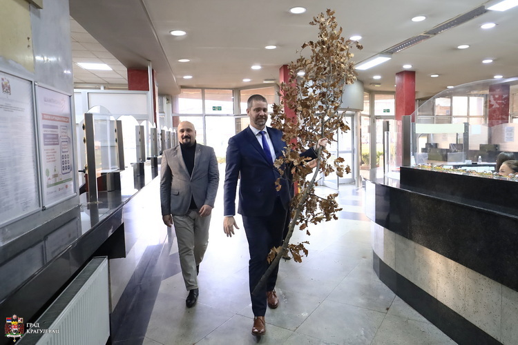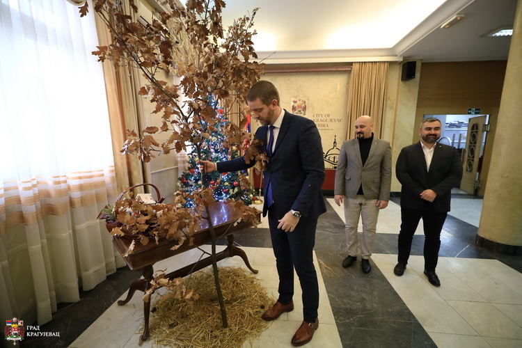 Традиционално на Бадњи дан, у сусрет најлепшем хришћанском празнику, Божићу, градоначелник Крагујевца Никола Дашић унео је бадњак у зграду Градске управе.