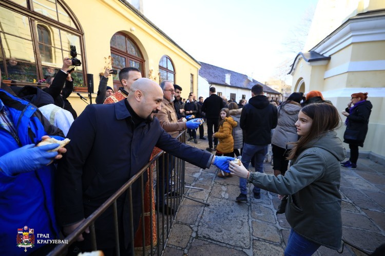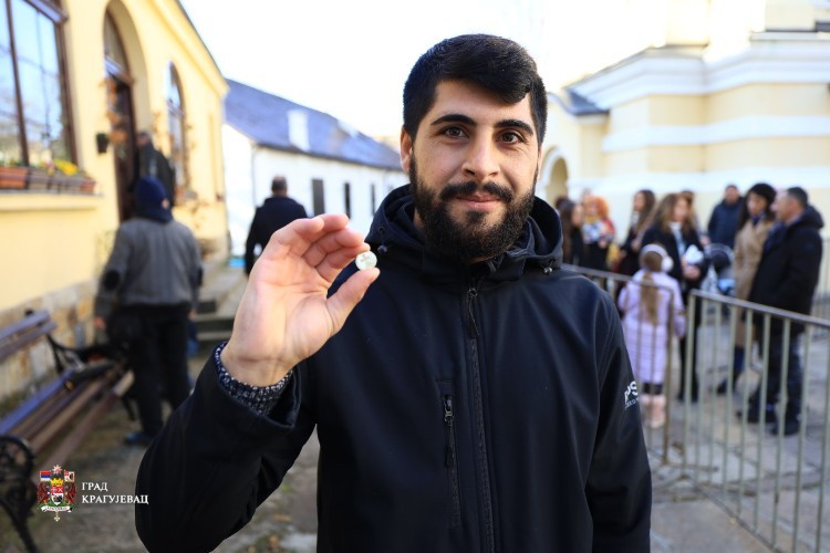 Велика је част и задовољство бити данас на овом светом месту, где се име Божије прославља више од 200 година, подсетио је свештеник Стефан Дамјановић. Нема веће радости за све нас него се сакупљати и сабирати у име Божије око Богомладенца Христа. Честитамо онима који су пронашли златник и два сребрњака, дар добрих људи из овог града. Златник и сребрњаци симболизују лепоту даривања другога, даривања за здравље, напредак, срећу, благостање и мир. Нека светлост Христовог рођења обасја све наше домове, нека се чује песма деце, нека радост Христова сија у свим нашим срцима, да сте живи и здрави и Богом благословени.