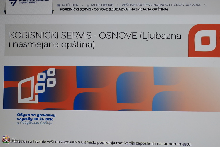 Обука „Љубазна и насмејана општина” спроводи се онлајн, преко платформе Националне академије за јавну управу, а спроводе је сертификовани тренери ове установе. Службеници Градске управе који раде у директном контакту са грађанима похађаће ову обуку у малим групама, наредних седам дана, у веб учионици која је прилагођена овој намени, објашњава Марија Шапић, начелница Градске управе за људске ресурсе и заједничке