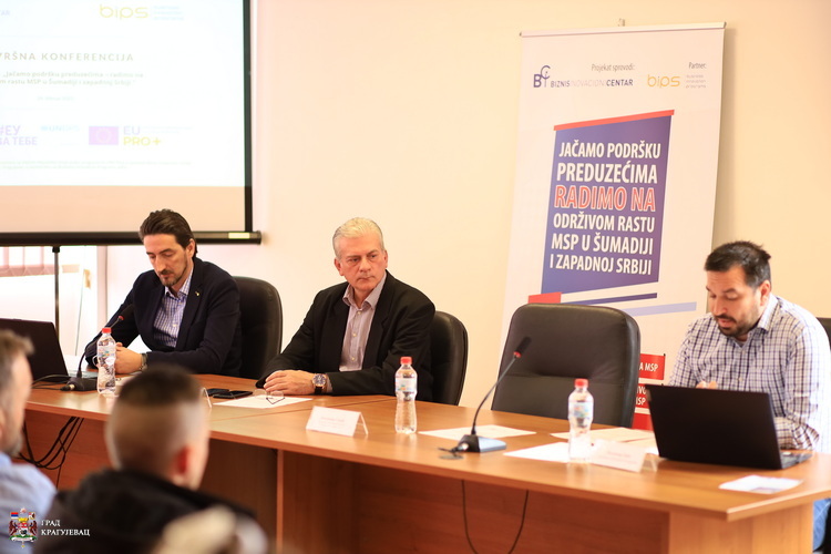 У Бизнис иновацином центру данас је одржана завршна конференција пројекта „Јачамо подршку предузећима – радимо на одрживом расту МСП у Шумадији и западној Србији“, на којој се говорило о постигнутим резултатима пројекта и значају организација за подршку бизнису за повећање конкурентности малих, микро и средњих предузећа.