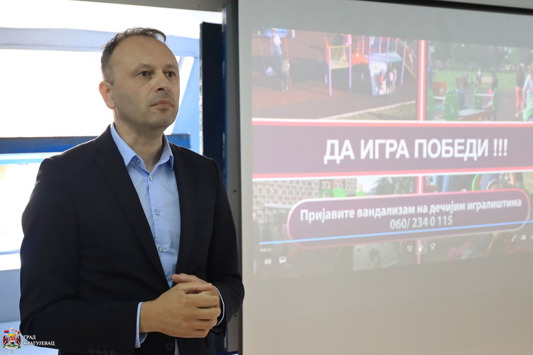 Ово је заједничка акција града Крагујевца и Министарства унутрашњих послова како би се спречио вандализам који је континуиран и веома присутан, рекао је Стевовић. Велики проблем који сви уочавамо је уништавање парковског мобилијара, садница али посебна су тема дечија игралишта и отворени терени за мале спортове и уништавање свих справа и имовине у коју град Крагујевац улаже озбиљна финансијска средства. Да се вандализмом не уништавају, уложена средства могла би да буду сачувана и издвојена за нове пројекте и инвестиције, а реч је о милионима динара. Данашње предавање део је плана којим кроз едукацију желимо првентивно да радимо са нашом децом. Желимо да они схвате колико је важно да буду наши сарадници, савезници и савесни грађани који су ту да помогну да се игралишта сачувају, да знају за своја права али и обавезе и шта од њих као друштво очекујемо.