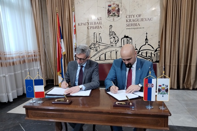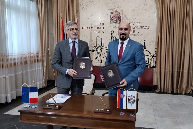 Сарадња између Града Крагујевца и Амбасаде Француске у Србији озваничена је данас потписивањем Конвенције о сарадњи. У име Амбасаде Француске у Србији, Конвенцију је потписао Пјер Кошар, амбасадор Француске у Србији који је тим поводом боравио у Крагујевцу и Мирослав Петрашиновић, председник Скупштине града. Амбасада Француске, Француски институт у Србији и град Крагујевац истакли су на овај начин заједничку жељу за развијањем нових партнерстава између Крагујевца и Француске посебно у области културе, образовања али и урбаног и одрживог развоја.