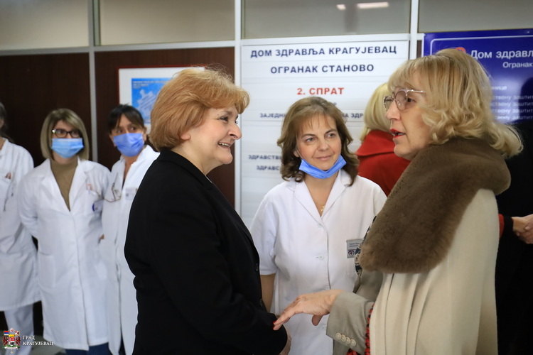 У Дому здравља Крагујевац ради се све оно о чему причам, а једино што би се могло додати је нека од специјалистичких служби, психијатрија или неурологија, казала је министарка здравља Даница Грујичић по обиласку управе Дома здравља и разговора са руководством установе. Она је истакла да су Домови здравља урадили 95% током ковида, јер су прегледали стотине хиљада људи, направили праву тријажу и послали у болнице оне које је требало послати у болнице.