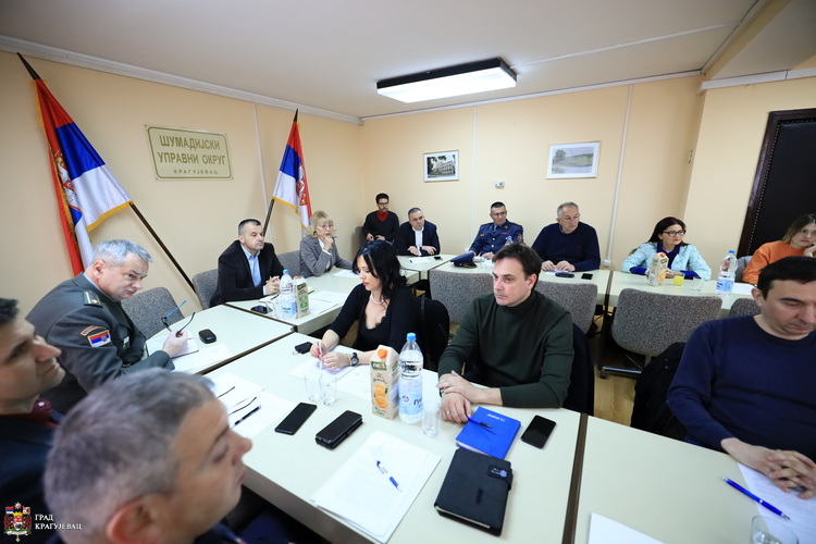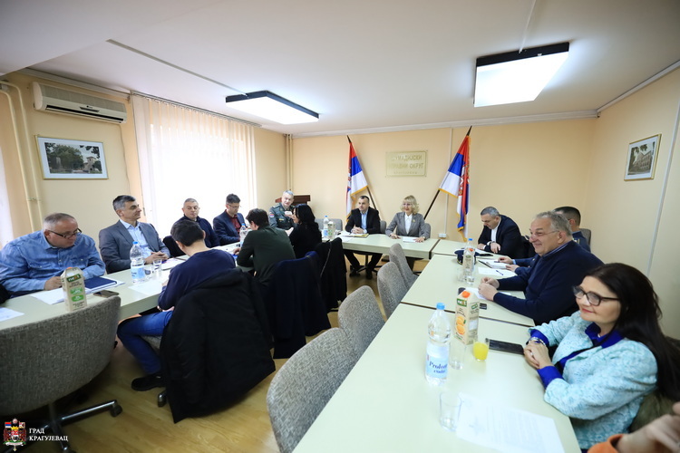 На седници су разматрани извештаји о стању пандемије вируса „Ковид-19“ на подручју Шумадијског округа, о заштити од пожара у 2022. години, о извршеним припремама и спровођењу превентивних и оперативних мера заштите од поплава, клизишта, ерозија и одрона и стању водних објеката за одбрану од поплава на водама првог и другог реда и др.
