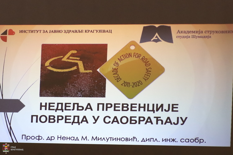 За ученике средњих школа, гимназија и представнике ђачких парламената у оквиру Недеље превенције повреда у саобраћају, проф. др Ненад Милутиновић, професор Више саобраћајне школе у присуству представника Института за јавно здравље, Саобраћајне полиције ПУ Крагујевац, представника града и надлежних градских служби, одржао је предавања о безбедности у саобраћају, факторима који најчешће доприносе настанку саобраћајних незгода, последицама и статистици саобраћајних незгода. У име града учеснике је поздравио председник Скупштине града Мирослав Петрашиновић.