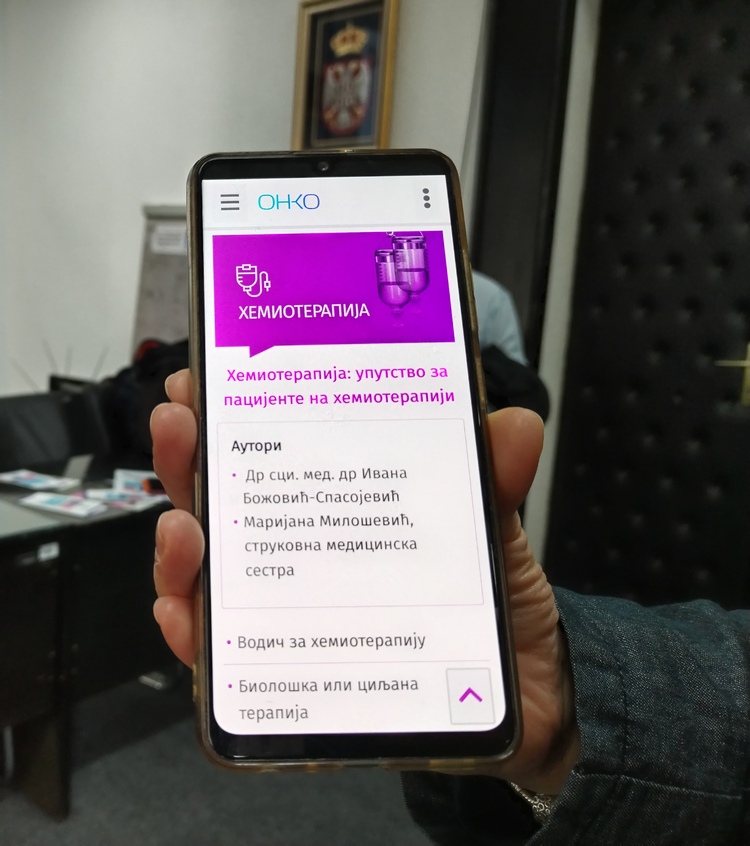 На Институту за радиологију и онкологију Србије већ двадесет година ради Саветовалиште за психосоцијалну подршку и рехабилитацију али смо и раније различитим брошурама обрадили теме односно одговорили на питања која муче наше пацијенте када се суоче са дијагнозом, али и све оне који превентивно желе да сазнају нешто о болести. Апликацијом смо желели да пружимо помоћ и подршку пацијентима у целој Србији, казала др сци. мед. Ана Јовићевић епидемиолог на Институту за онкологију и радиологију.