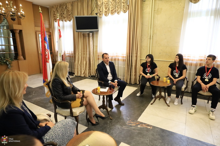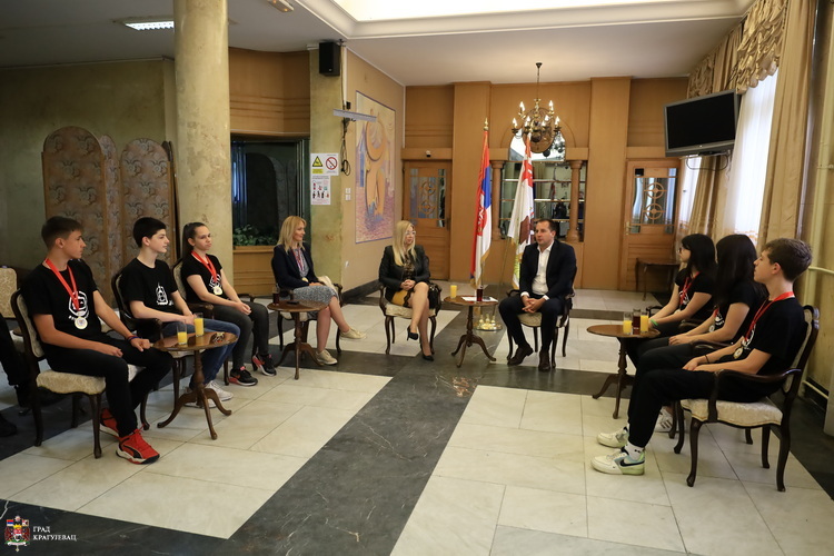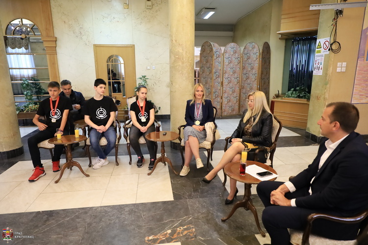 За чланове информатичке секције „Робосапијенси“ Основне школе „Светозар Марковић“ који су на 8. међународном такмичењу талентованих ученика из информатике ИНФОС 2023 освојили четири прва и једно друго место данас је приређен пријем у згради Градске управе. Шесторо учесника такмичења, директорку школе Татјану Маринковић и менторку, наставницу Марију Андоновић Радојевић, поздравио је члан Градског већа за образовање, Душан Алексић.