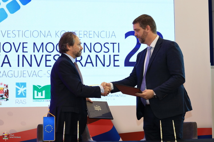 На Инвестиционој конференцији „Нове могућности за инвестирање 23“ Њ.Е. амбасадор Европске уније Емануел Жиофре и градоначелник Крагујевца Никола Дашић потписали су писмо о намерама о отварању Европске куће у Крагујевцу.