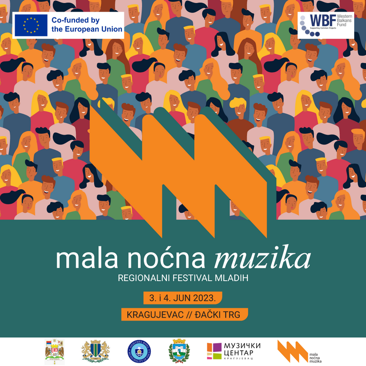 На Ђачком тргу, 3. и 4. јуна у партнерској организацији са пријатељским и побратимским градовима Охридом, Баром и Фочом уз подршку Фонда за Западни Балкан, одржаће се Регионални фестивал младих под називом „Мала ноћна музика“.