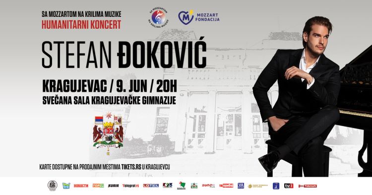 Клавирски концерт пијанисте Стефана Ђоковића "Са Моцартом на крилима музике" одржаће се у свечаној сали Прве крагујевачке гимназије у Крагујевцу, 9. јуна са почетком у 20 часова.