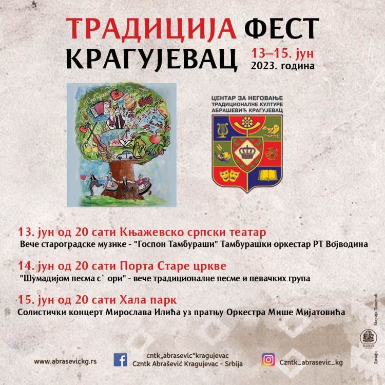 Традиција фест дело је Центра за неговање традиционалне културе „Абрашевић“ Крагујевац, који и овогодишњим програмом показује да је истински чувар онога што је у сржи српског бића.