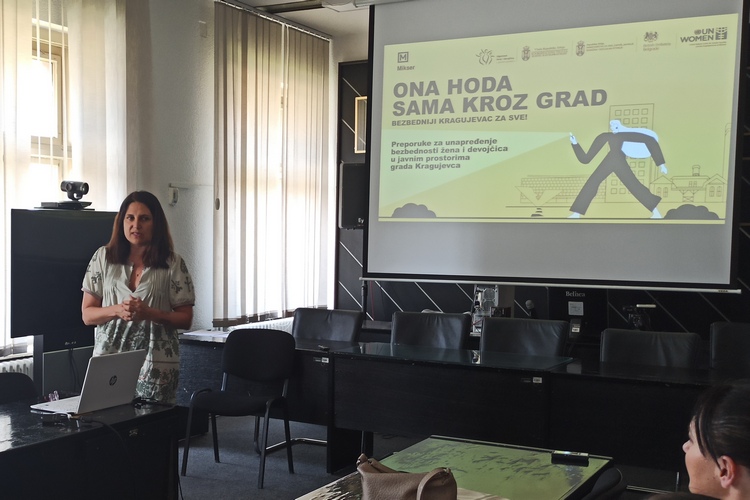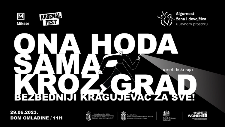 Реч је о иницијативи подизања свести о безбедности жена, девојчица и осетљивих друштвених група „Она хода сама кроз град – безбеднији Крагујевац за све“ која се одвија се у склопу пројекта „Сигурност жена и девојчица у јавном простору" који спроводи Агенција Уједињених нација за родну равноправност и оснаживање жена – UN Women, у сарадњи са Координационим телом за родну равноправност, Министарством за рад, запошљавање, борачка и социјална питања, јединицама локалне самоуправе, организацијама цивилног сектора, Миксером и Амбасадом Уједињеног Краљевства,