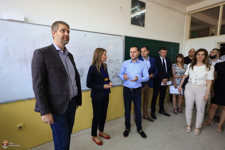 Радове на пројекту унапређења енергетске санације школе, који обухватају уређење фасаде, замену столарије, постојећег котла на угаљ, котловима на гас, модернизацију система унутрашњег осветљења, данас су обишли министарка рударства и енергетике Дубравка Ђедовић и градоначелник Крагујевца Никола Дашић.