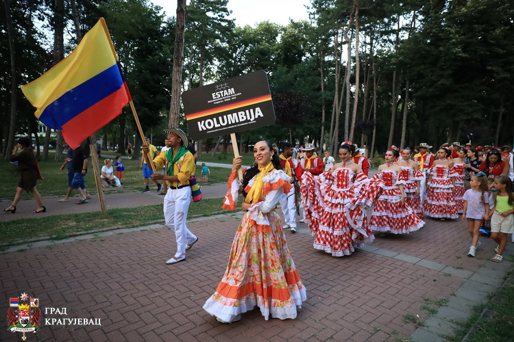 У Крагујевцу је синоћ почео први међународни фестивал фолклора ЕСТАМ. Разноврсност традиционалног плеса, мелодија, раскошних костима латиноамеричких и ансамбала са Балкана, довели су свет у Крагујевац спајајући све универзалним језиком пријатељства.