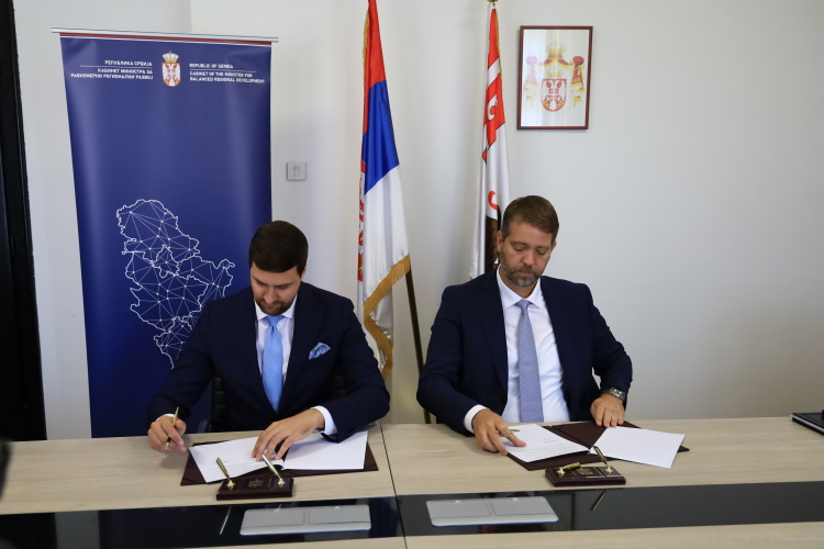 Един Ђерлек, министар без портфеља задужен за равномерни регионални развој и градоначелник Никола Дашић, потписали су данас Уговора о инвестирању у раст производње предузећа „Шумадија д.о.о“ из Крагујевца. Уговором чија је вредност 2,6 милиона динара предвиђена је набавка машине за производњу тартана. Потписивању Уговора у згради Градске управе, присуствовали су Предраг Стевовић, члан Градског већа за спорт и Ненад Поповић, директор Регионалне агенције за економски развој Шумадије и Поморавља.