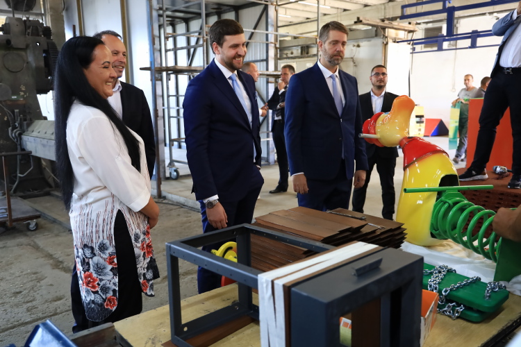 Управо сам са градоначелником Дашићем потписао уговор о суфинансирању пројекта инвестирања у раст предузећа „Шумадија д.о.о“. Ово предузеће запошљава 61 радника, међу којима је и 37 особа са инвалидитетом. Они се претежно баве обрадом метала и израдом производа од метала. Циљ пројекта је унапређивање раста и развоја предузећа, запошљавање још лица, нарочито особа са инвалидитетом, али исто тако и унапређење ефикасности предузећа, како би задовољило потребе града али и шире. Пројектом је обухваћена набавка машине за производњу гумених плоча, за израду тартана који је потребан за дечија игралишта – казао је министар Ђерлек.