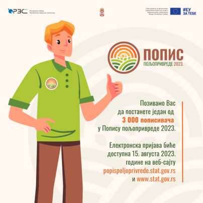 Јавни позив (конкурс) за пријављивање кандидата за пописиваче објављује се 15. августа 2023. године у 8.00 часова на веб-сајту Завода (stat.gov.rs) и сајту Пописа (popispoljoprivrede.stat.gov.rs), као и у средствима јавног информисања.