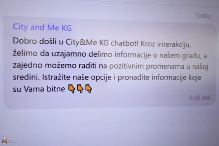 Поред представника локалне самоуправе, конференцији је присуствовао Бранко Крсмановић, представник компаније „Јуст старт“ из Ниша која је направила Четбот. Реч је о интерактивном сервису инкорпорираном у апликацију Viber, а истовремено функционише и на Андроид и иОС уређајима. Интерфејс Chatbota под називом „City анд ме КГ“ је веома интуитиван и лак за сналажење, тако да корисници кроз систем менија веома брзо долазе до жељене информације, а вести се дневно ажурирају, казао је Крсмановић један од креатора.