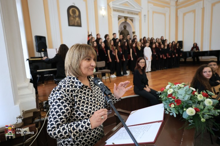 Сваке године у исти дан и исти час, под велом историје, са тугом али и пркосом говоримо о октобру 1941. године. Данас, и после 82 године, желимо да причу о њима поделимо са целим светом. Говоримо о свом граду и страдању које нећемо заборавити. Живимо и чувамо сећање на све ђаке и родољубе нашег града, наше Шумадије, рекла је директорка Прве крагујевачке гимназије, Славица Марковић. У име тог сећања одајемо почаст жртвама крагуејвачког октобра. Наша мисија је да сва болна сећања преточимо у наду, љубав и лепоту које ће се из суморног октобра винути и наћи своје место и овде и у целом свету. И зато, и данас говоримо, сликамо стиховима и нотама сећајући се октобра 1941. године, поручила је Марковић.