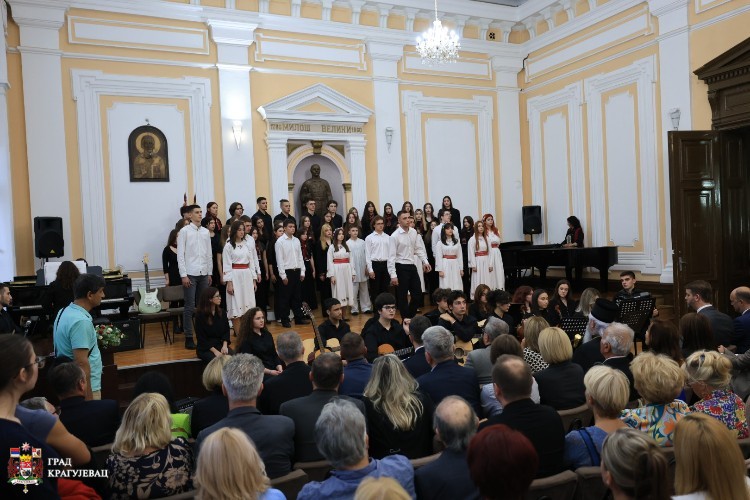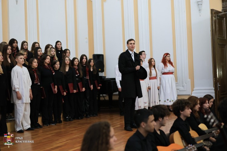 Хор школе извео је композицију „Ено тамо“ коју је написала ученица Емилија Накић. Све писане аранжмане за хор и оркестар писале су наставнице школе Сузана Јевтовић и Марија Мошић. Аранжман на текст и музику композиције „Не дам“ обогаћен текстом „Волим, волим“ написао је бивши ученик Прве крагујевачке гимназије, Перица Марш.