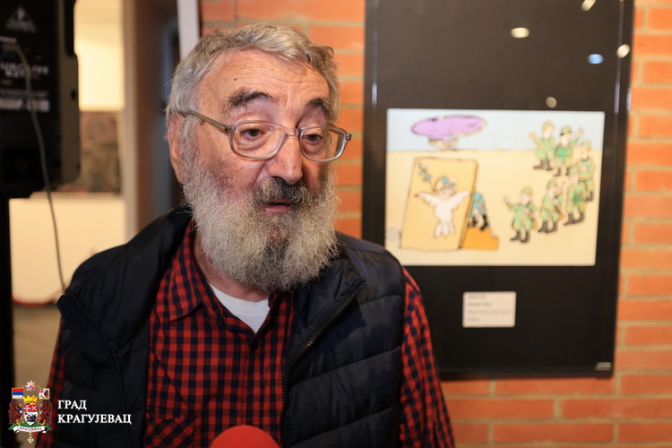 Музеј „21.октобар“ је међународни центар антиратне карикатуре, рекао је, пожелевши добродошлицу гостима и уметницима у име града Крагујевца, Миљан Бјелетић, члан Градског већа за културу. Као вредносна орјентација свих претходних генерације и данашње, ова изложба неформално представља мировни покрет Крагујевчана. Од када је света и века било је ратова, а данас сведочимо њиховом умножавању. Позив који упућујемо данас кроз овај међународни догађај, а он је више од изложбе, представља нашу жељу за промоцијом мира на глобалном нивоу. Богатство личних израза уметника и боја којима дочаравају гласније од речи, снажније од оружја, арсенал су на који смо поносни, поносни што је на овој адреси и на то што се увећава из године у годину, поручио је Бјелетић.