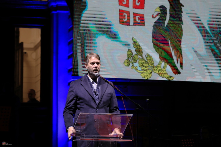 Учинили сте ми велику част што сам вечерас у некадашњој престоници, у Крагујевцу у центру Шумадије, граду из којег је почела обнова отаџбине после вишевековног ропства и дугог периода мрака и муке, казао је министар Вучевић. Корен државотворности обновљене Србије, од Устава, гимназије, позоришта, наменске индустрије, електрификације почео је у Крагујевцу. Цео национални и интелектуални потенцијал тадашње кнежевина Србије сабрао се у срцу Шумадије са призивом да све што знамо и умемо усмеримо за јачање наше отаџбине. Овај прелепи трг посвећен је најстаријем српском војводи Радомиру Путнику који је био пет пута војни министар, два пута начелник генералштаба, победник Кумановске и Битољске битке, битке на Брегалници и једини војвода који је могао да окупи друге војводе. Имао је ауторитет над Степом, Мишићем и Бојовићем и једини војвода који је и краљу и регенту могао да каже све оно што је требало да каже војни министар.